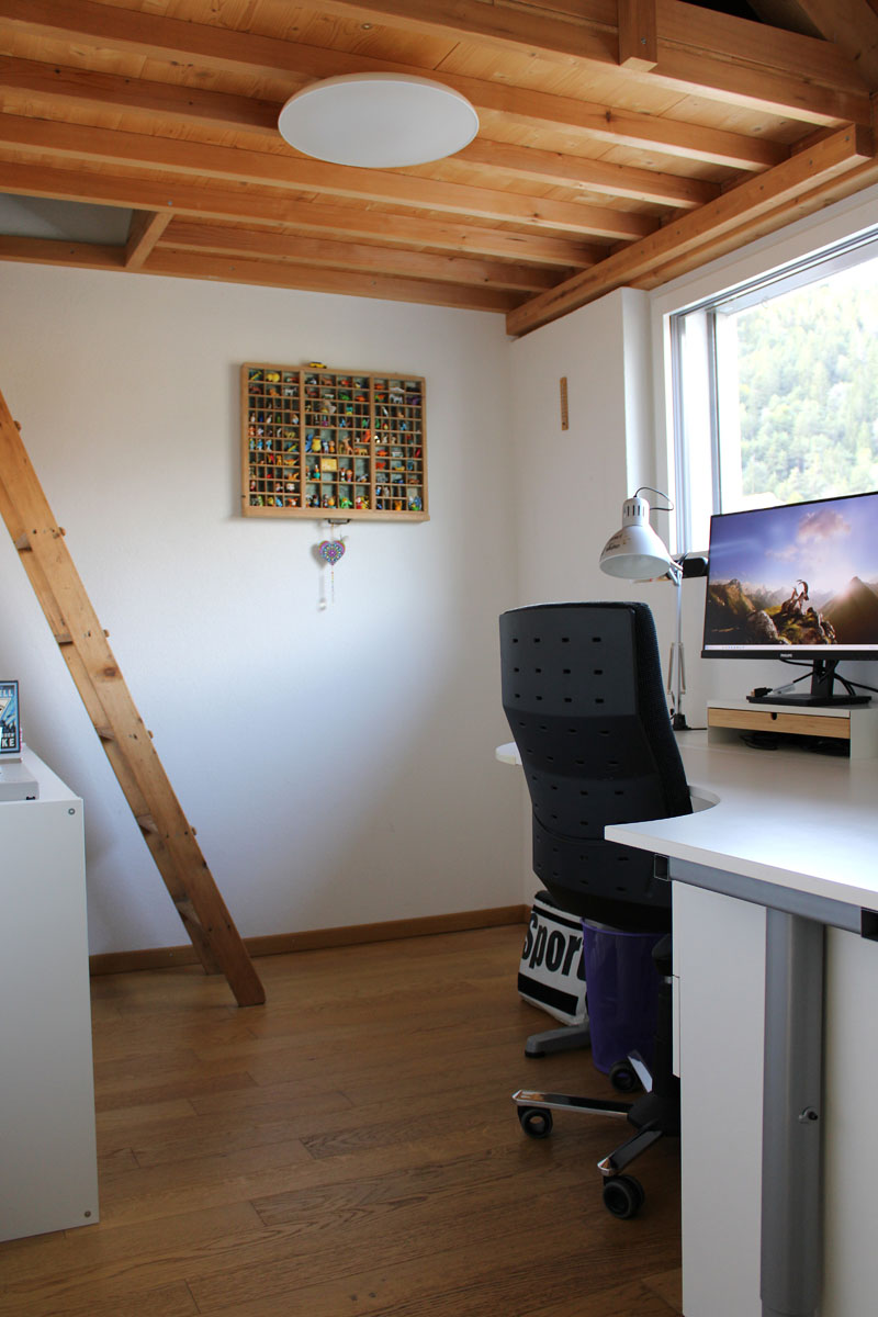 Die Ausrichtung des Gebäudes ermöglicht eine optimale Besonnung der Innenräume. Sowohl die zentralen Ess- und Kochbereiche im Erdgeschoss als auch die Zimmer im Obergeschoss profitieren von den günstigen Lichtverhältnissen.