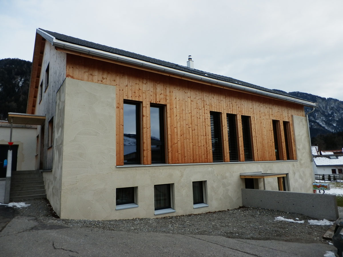 Der umgebaute Stall befindet sich an einer leichten Hanglage unweit der Dorfkirche von Paspels. Der Wunsch der Bauherrschaft, den authentischen Stallcharakter auch nach dem Umbau spürbar zu erhalten, konnte durch die sensible Fassadengestaltung vollumfänglich erfüllt werden.
